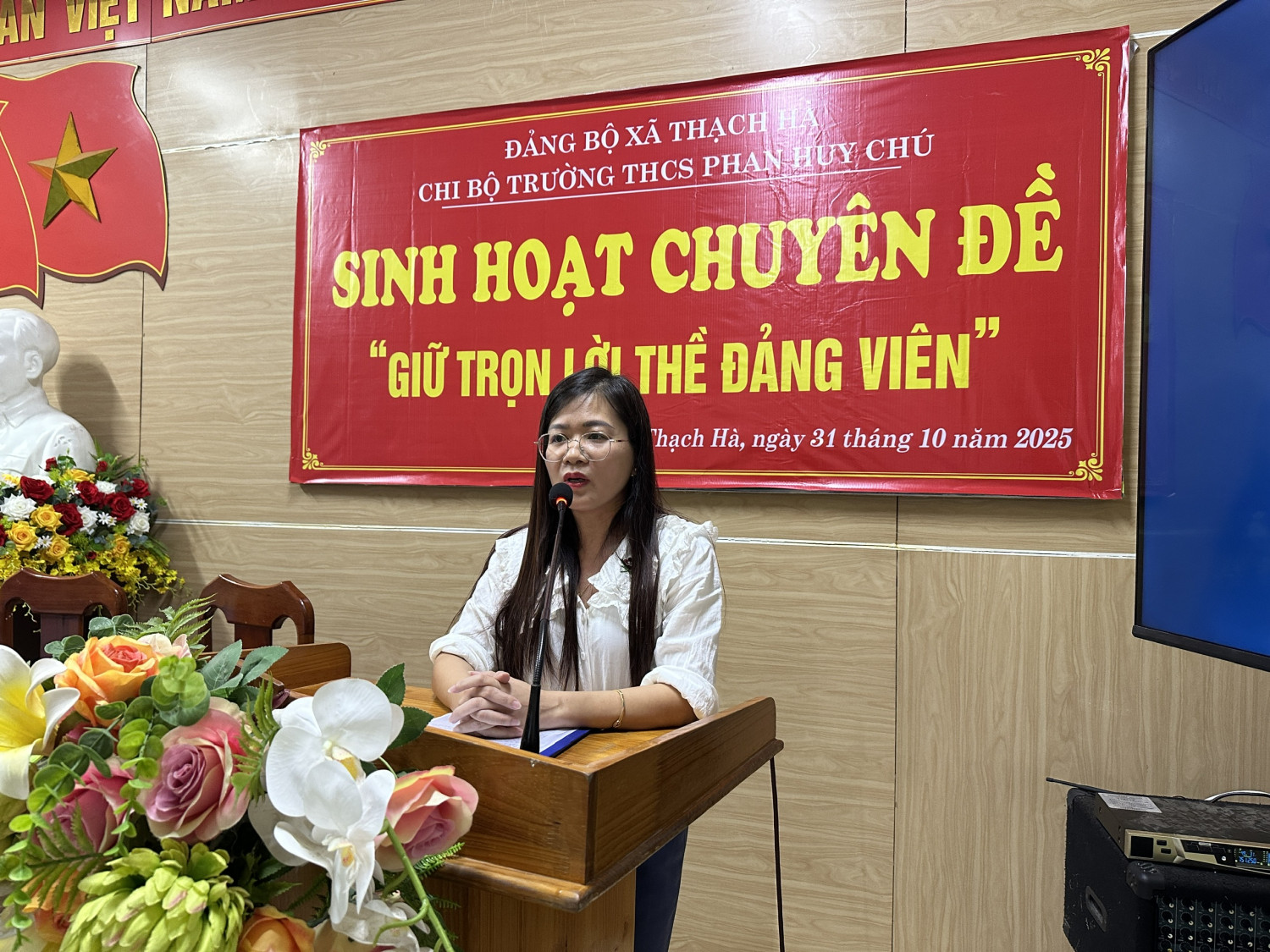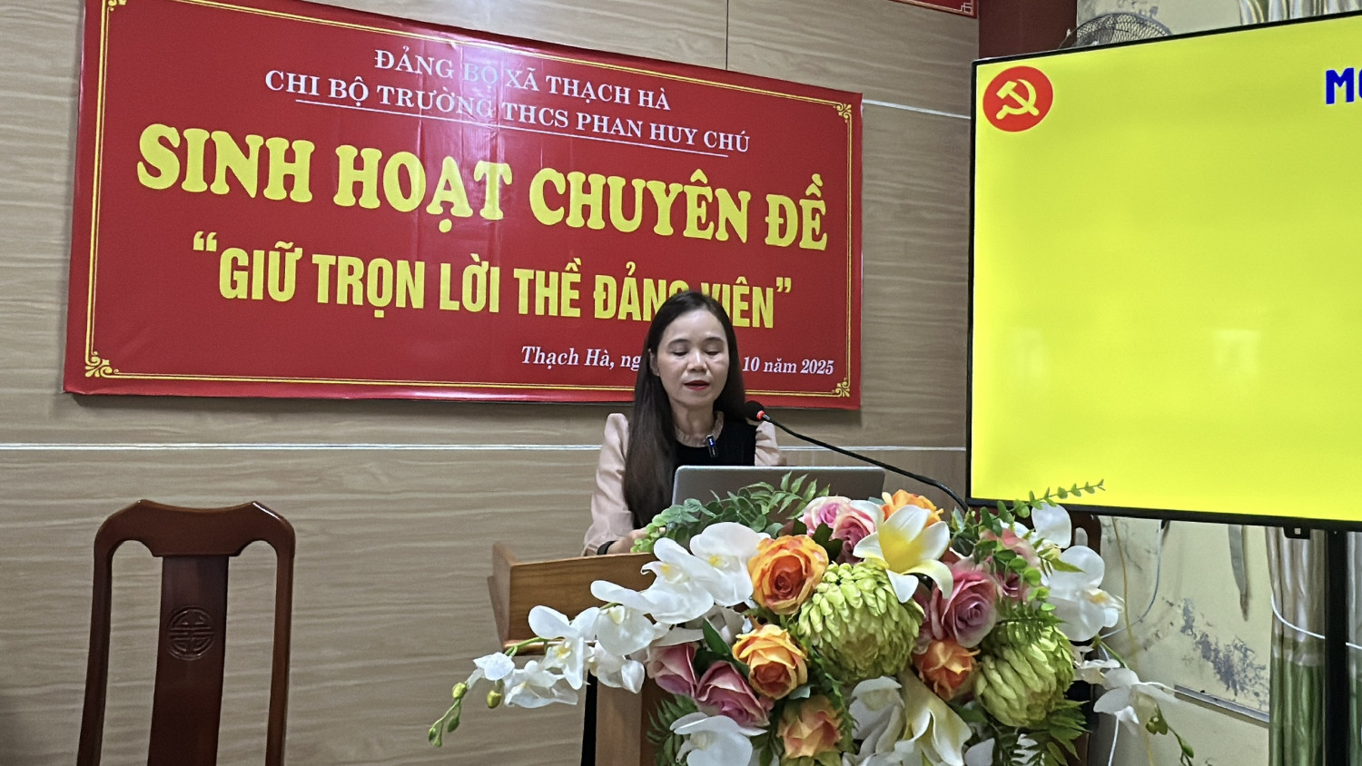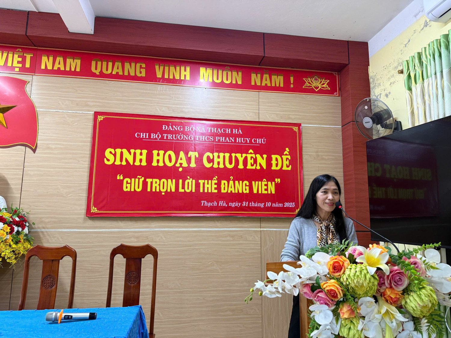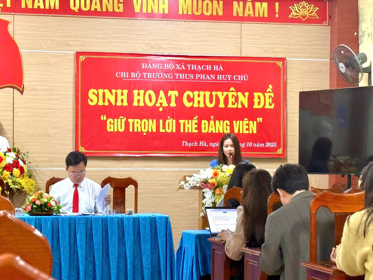 Thực hiện kế hoạch của Đảng ủy xã Thạch Hà về việc tổ chức sinh hoạt chuyên đề năm 2025, chiều ngày 31 tháng 10 năm 2025, Chi bộ Trường THCS Phan Huy Chú đã tổ chức buổi sinh hoạt chuyên đề với chủ đề “Giữ trọn lời thề Đảng viên”.