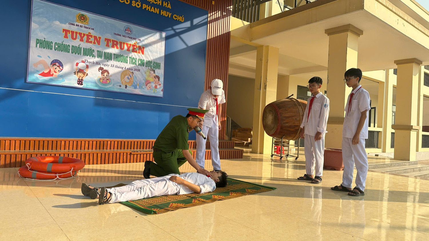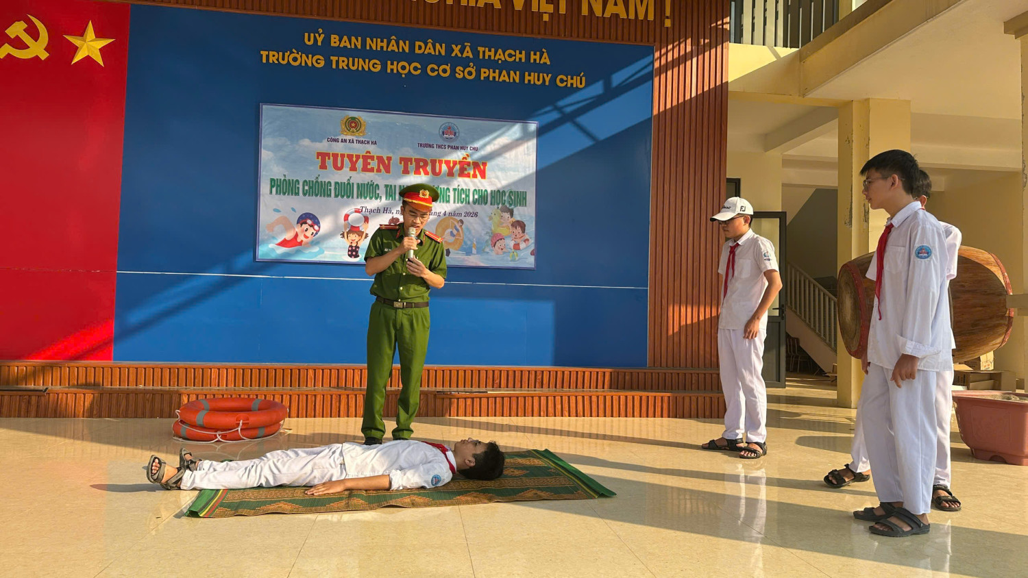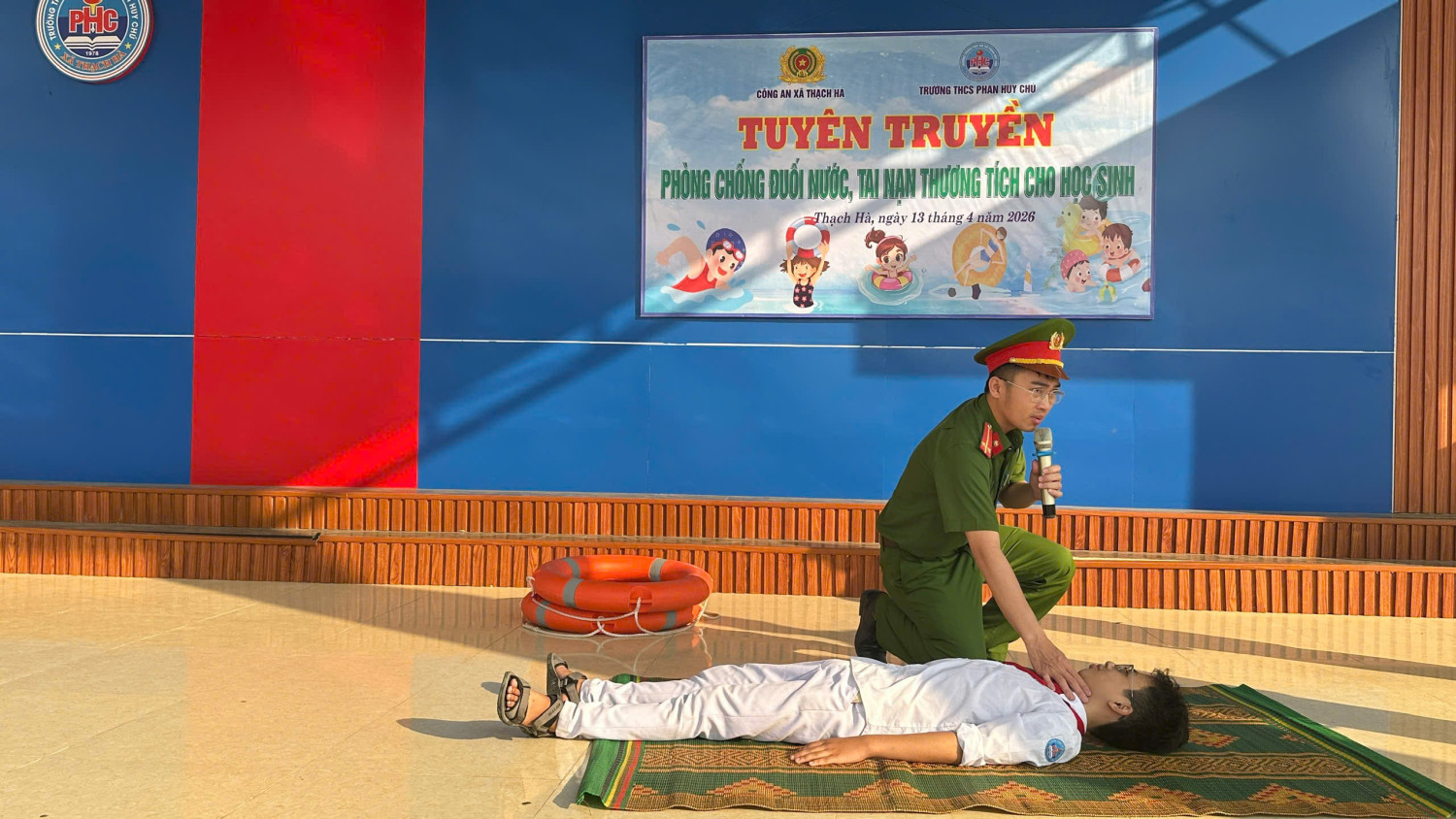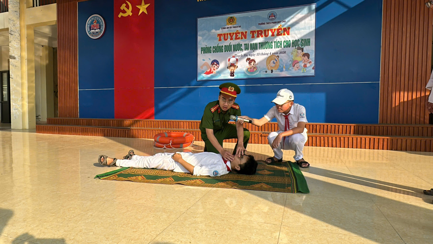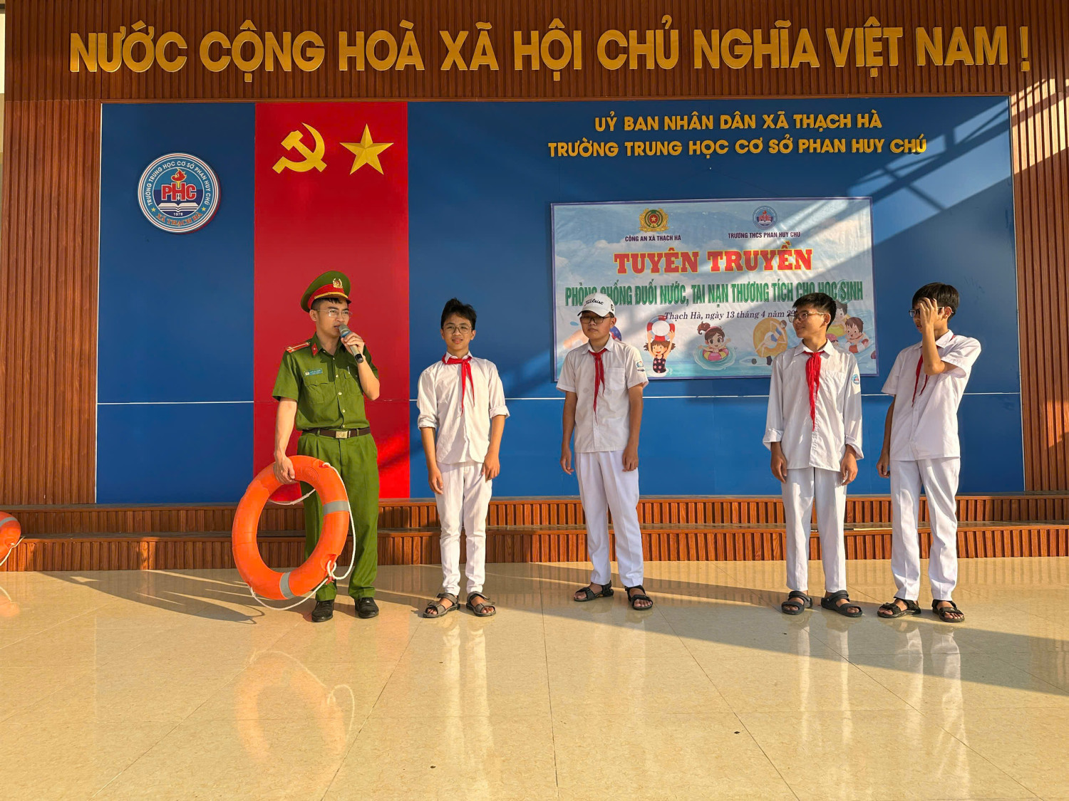 Nhằm nâng cao nhận thức và trang bị kỹ năng phòng, chống đuối nước cho học sinh, sáng 13/4/2026 Trường THCS Phan Huy Chú phối hợp với Công an xã Thạch Hà tổ chức buổi tuyên truyền, giáo dục kỹ năng an toàn dưới nước cho toàn thể học sinh trong nhà trường.