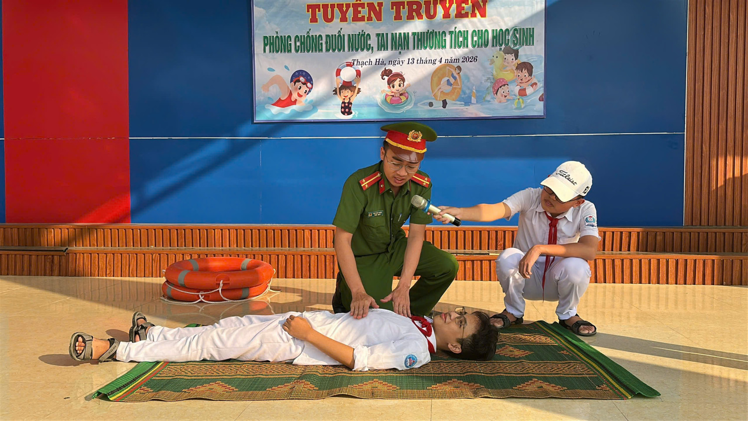 Tại buổi tuyên truyền, cán bộ công an đã cung cấp cho các em học sinh những kiến thức cơ bản về nguyên nhân dẫn đến tai nạn đuối nước, các tình huống nguy hiểm thường gặp khi tham gia hoạt động tại ao, hồ, sông, suối. Đồng thời, học sinh được hướng dẫn các kỹ năng phòng tránh đuối nước, kỹ năng xử lý khi gặp người bị đuối nước và nguyên tắc đảm bảo an toàn cho bản thân khi tham gia cứu hộ.